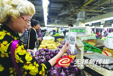 The Chaoyang Agricultural Market in Wuxi's downtown Zhongshan Road has introduced the digital payment system since May 24 to facilitate its consumers. Stickers attached with QR codes have been stuck to every booth in the market while the transaction can be completed via Alipay and WeChat payment, two biggest online payment platforms in China.
