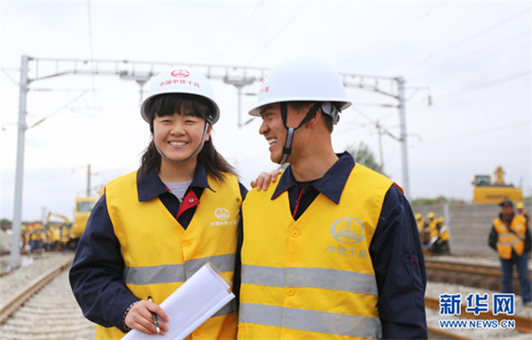 Wang Hong and Hu Gang have been working for China Railway Tenth Group for years. [Photo/ Xinhua]