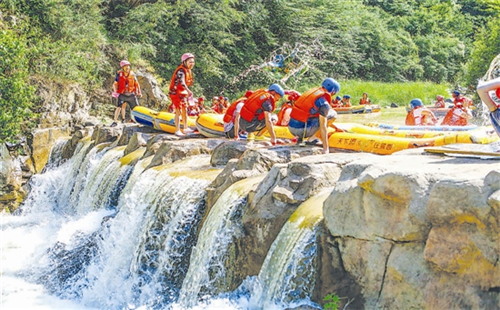 The Grand Canyon at Guandaokou township boasts cascading waterfalls and calm pools, drawing in a great number of rafters each year.