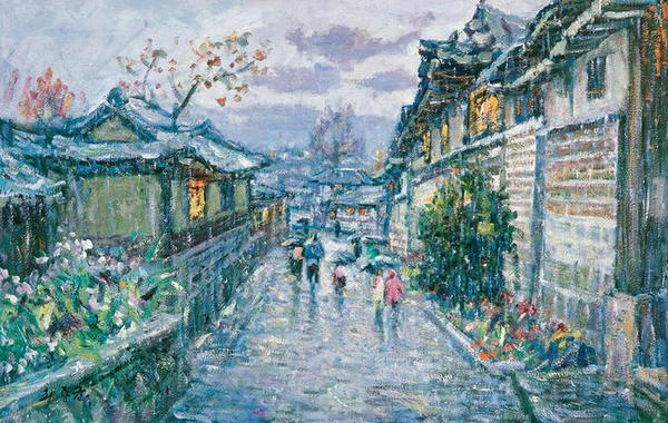 | Street in Rain, by Cui Zhongjun. [Photo/artron.net] |