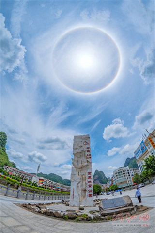 | A beautiful sun halo appears in Fengshan county on June 7. [Photo by Pu Jiayong/Hechi Daily] |