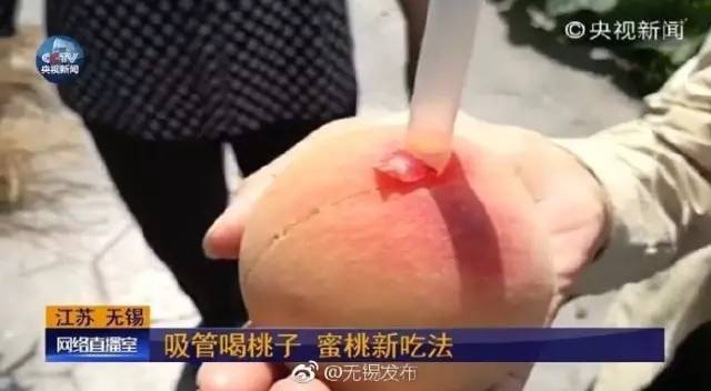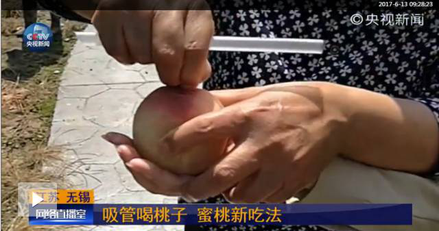 Prepare a straw and stick it into the honey peach through the small opening. [Photo provided to chinadaily.com.cn]