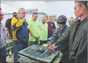| US workers visit CRRC Changchun Railway Vehicles to learn about subway manufacturing techniques.[Photo provided to China Daily] |