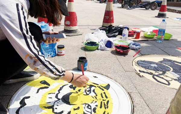 The well lid-drawing project was initiated by the local construction committee and was intended to beautify the city roads. More rust well lids in the business streets will be decorated with colorful shapes.