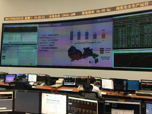 | The Dispatch center of China Southern Power Grid Shenzhen administration of power supply. [Photo provided to chinadaily.com.cn] |