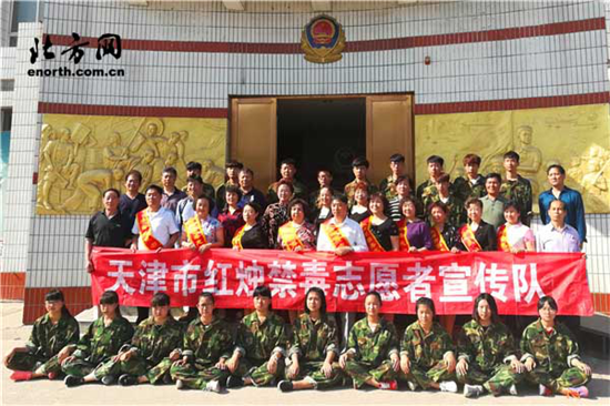| The Tianjin Hongzhu Anti-drug Voluntary Group visits a school to increase knowledge of drug prohibitions. [Photo/enorth.com.cn] |