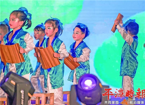| Youngsters from Pingtan Experimental Kindergarten celebrate their commencement with a joyous celebration of singing, dancing and fashion shows on June 23. [Photo provided to chinadaily.com.cn] |