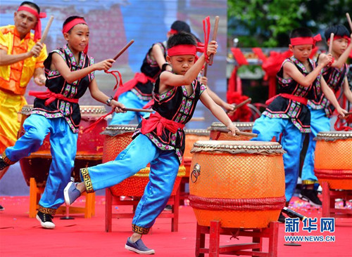 | Traditional drum performance is taken to the stage to celebrate the Zhuzhu Festival. [Photo by Huang Xiaobang/Xinhua] |