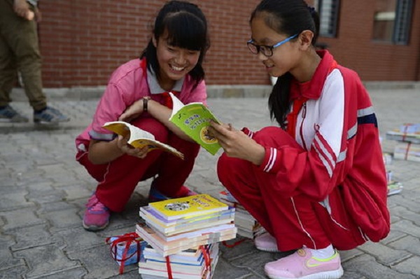Children read books donated from Inner Mongolia Library at a primary school where most students’ parents are migrant workers in Hohhot on June 27. [Photo/chinanews.com]
