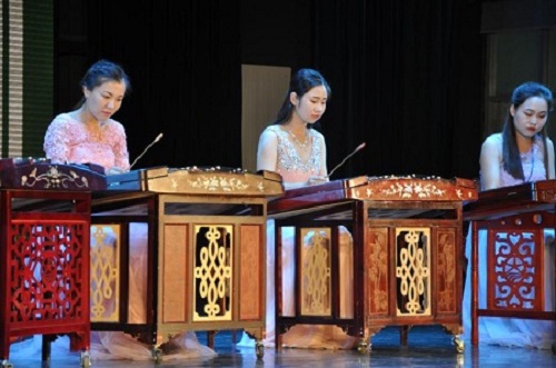 Teenagers play hammered dulcimers during the Inner Mongolia Division Trials of China International Youth Art Festival on June 27, 2017. Hundreds of young musicians competed in nine performance events including the cucurbit flute, violin, horsehead fiddle (a Mongolian bowed-stringed musical instrument with a scroll carved like a horse’s head), erhu (a two-stringed bowed instrument), Chinese zither, and singing. [Photo/hhhtnews.com]