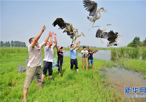 | Herons are set free in Nanyang, Henan province, on July 3. [Photo/Xinhua] |