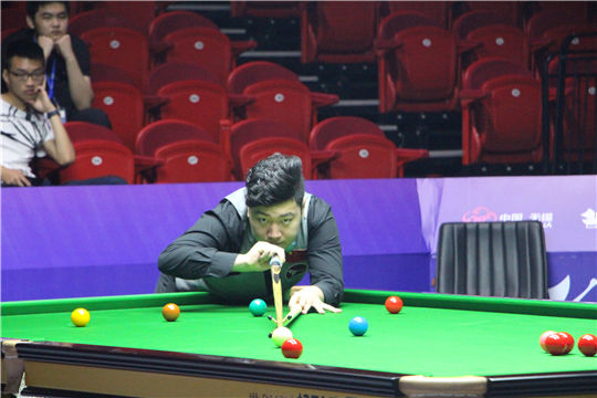 | Liang Wenbo of China B team competes in the match against Brazil in the 2017 Snooker World Cup in Wuxi, China, on July 5. [Photo provided to chinadaily.com.cn] |