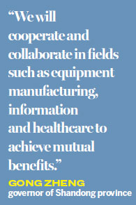 "I hope Shandong and Bavaria see this joint statement as a new starting point of our relationship. We will strengthen our strategic partnership, expand investment in terms of scale and fields involved, and support matchmaking for projects," said Gong Zheng, governor of Shandong province. "We will cooperate and collaborate in fields such as equipment manufacturing, information and healthcare to achieve mutual benefits."