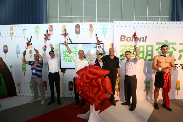 | Chinese home décor manufacturer Boloni releases its latest environmentally friendly technology for sheet material production during the fair. [Photo provided to chinadaily.com.cn] |