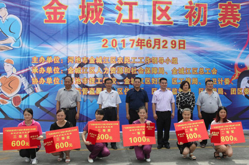 A competition tryout was held in the Jinchengjiang district of Hechi, on June 29, for the approaching fourth Migrant Worker Skills Competition of the Guangxi Zhuang autonomous region.