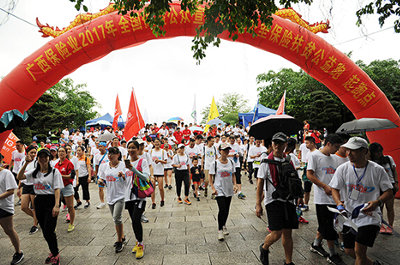 | Runners prepare to set off on a charity run in Hechi, on July 8. [Photo/gxnews.com] |
