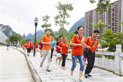 | Runners hit the pavement for charity in South China's Guangxi Zhuang autonomous region, on July 8. [Photo/Hechi Daily] |