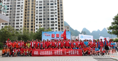 A total of 186 volunteers in the insurance industry and dozens of Hechi locals gathered at China Life Insurance (Group) Company's Hechi branch to set off on their charity run.