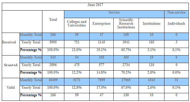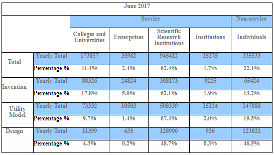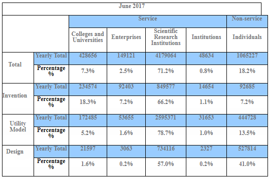 Table 6 Statistics on Grants for Three Kinds of Patents from Home Classified According to Applicants