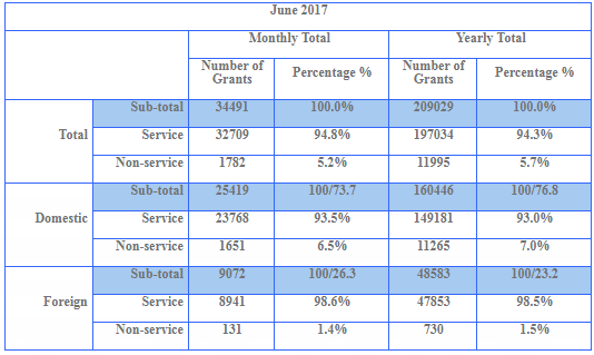 Table 4 Distribution of Grants for Inventions Received from Home and Abroad