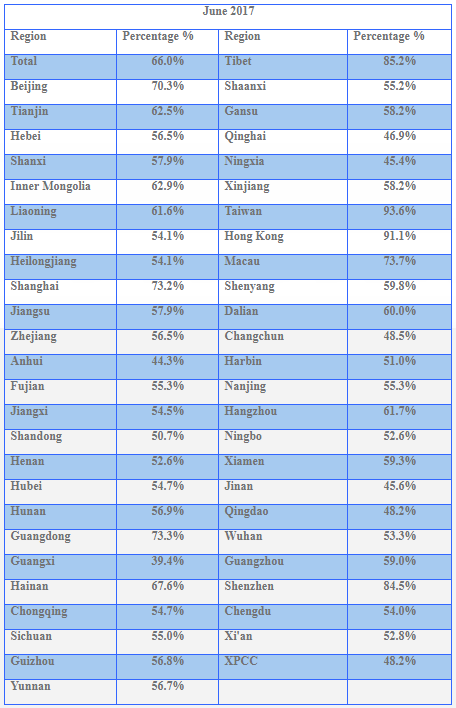 Table 9 Statistics on Valid Inventions Maintained for More Five Years in Regions across China