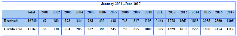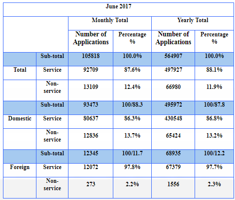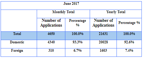 Table 1 Statistics on Applications for Inventions from Home and Abroad