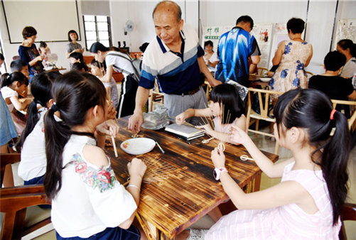 | Children ardently learn the traditional handicraft. [Photo by Qian Cheng/ yzdzw.gov.cn] |