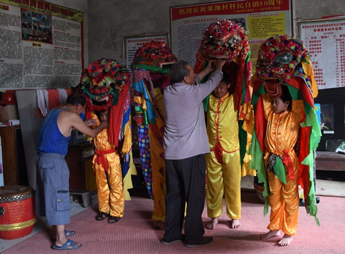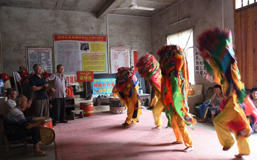 Maoshi dance, a variant of Lion dance, is performed in Hezhai village, Yizhou, Guangxi Zhuang autonomous region. [Photo by Qin Shiyong, Tang Qiongfang/Hechi Daily]