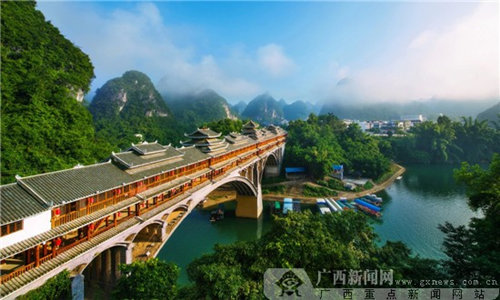 | Yizhou resplendent in misty green mountains. [Photo/gxnews.com.cn] |