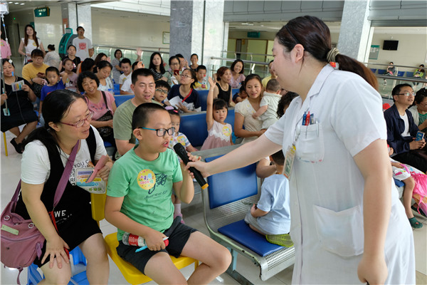 Children races to answer questions at the No.9 People's Hospital in Wuxi on July 22. [Photo / wxrb.com]