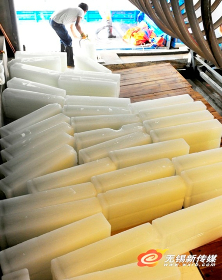 Since July 12, Wuxi has experienced soaring temperatures, which is certainly sending these ice plant workers into overdrive with the booming demand caused by a need to keep fruit and vegetables fresh in local markets. The water take 15 hours to harden and each block weighs 50 kilograms with the workers operating on two shifts so as to ensure market demands are met.