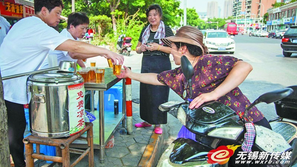 During July's scorching heat, one retired party member has been handing out herbal tea to local citizens as an act of good will. The group estimates giving out more than 800 cups of the refreshing drink every day.