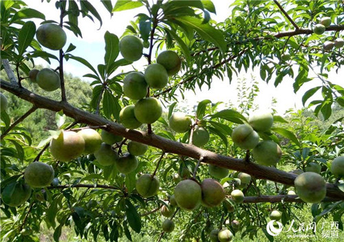 | Growing pearl plums has helped to increase the incomes of local people in Minglun town of Huanjiang Maonan autonomous county. [Photo/gx.people.com.cn] |
