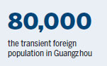 According to the city's exit and entry department, Guangzhou now has a transient foreign population of about 80,000, more than 60 percent of them from Asian countries.