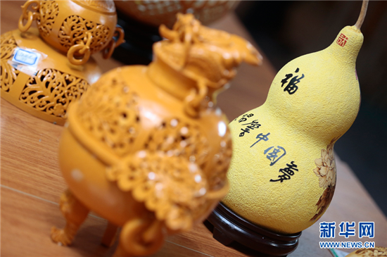 Calabash lovers show their works on July 23. [Photo/Xinhua]