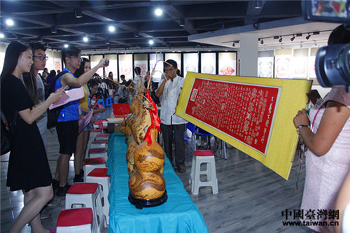 Visitors view the paper-cutting artwork Lantingxu (Orchid Pavilion Prologue), a masterpiece in Chinese calligraphy. [Photo by Gao Limin/taiwan.cn] |