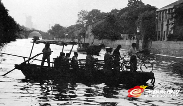 A boat transfers residents across the Grand Canal in Dayao Road, Wuxi, in 1987. [Photo by Rong Xingyi / wxrb.com]