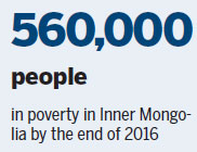 Inner Mongolia had an estimated 560,000 poverty-stricken people by the end of 2016, most of whom live in distant rural areas, according to the regional government.
