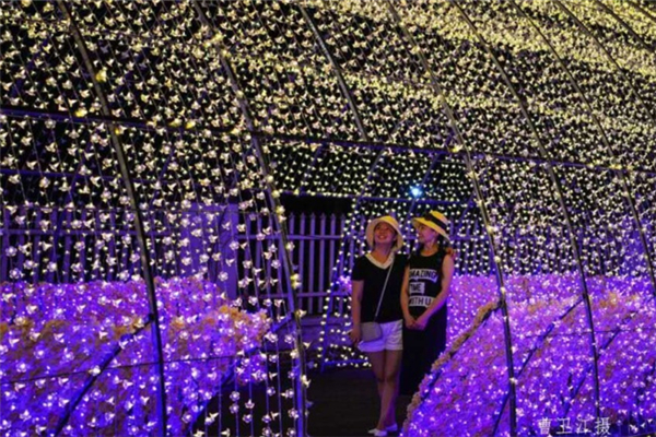 Visitors enjoy their time in the light Illuminated world in Meixi village. [Photo provided to chinadaily.com.cn]
