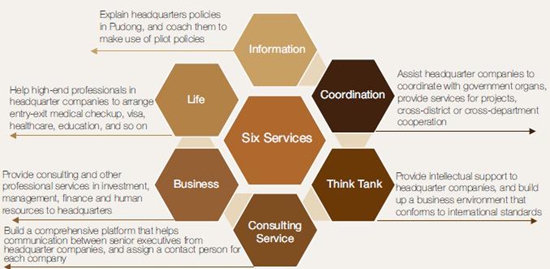 Think tank: Provide intellectual support to headquarter companies, and build up a business environment that conforms to international standards