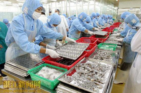 Export value of Zhanjiang's aquatic product for the first half of the year hit a record high of 2.22 billion yuan ($330 million), an increase of 39.8 percent according to a report by Zhanjiang Customs.