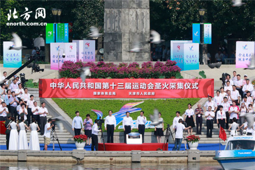 On August 6th, the sun-ray ceremony of the 13th National Games was held in Siyuan Square, at the estuary of Haihe River.