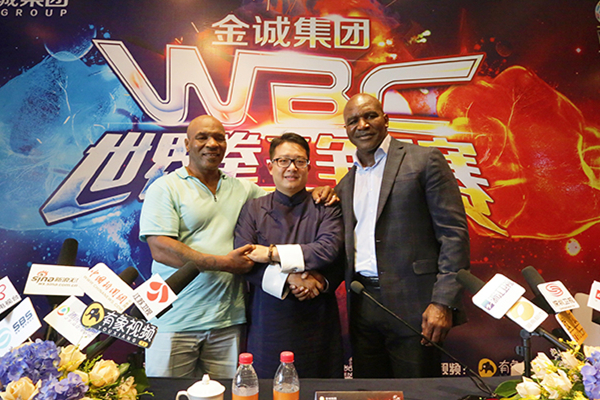 | The World Boxing Championship held in Wuxi is spectated by boxing legends Mike Tyson and Evander Holyfield. [Photo provided to chinadaily.com.cn] |