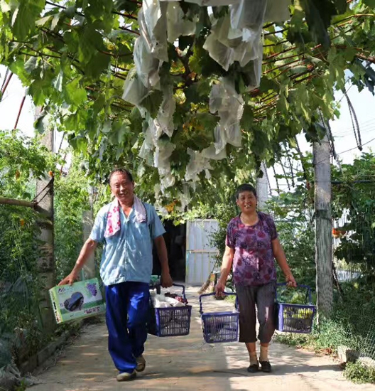 Farmers harvest grapes from the vineyard to sell. [Photo/ provided to chinadaily.com.cn]