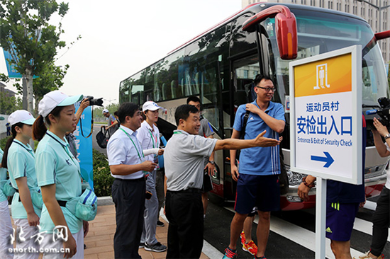 | The first group of athletes arrives at Quanyun Village for the 13th National Games.[Photo/enorth.com.cn] |