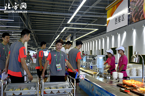 | The village restaurant provides all kinds of food to athletes.[Photo/enorth.com.cn] |