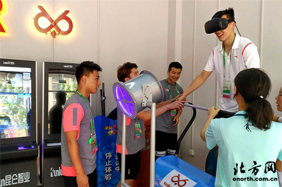 | An athlete plays a VR game in Quanyun Village.[Photo/enorth.com.cn] |