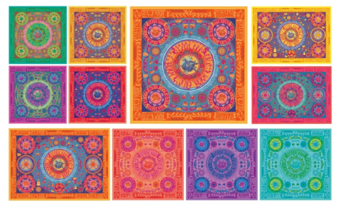 | The patterns printed on scarves designed by the Hou Hewei team. [Photo provided to chinadaily.com.cn] |