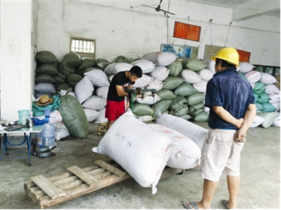 | The cooperative for the planting of Chinese herbal medicine in Tianhe town purchases Chinese wormwood cultivated by local farmers. [Photo by Luo Yuanning /Hechi Daily] |