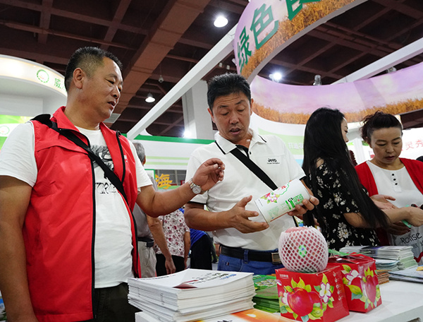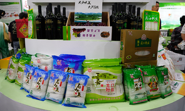 Yantai specialties are on display at the green food expo, Aug 18. [Photo/nmgnews.com.cn]